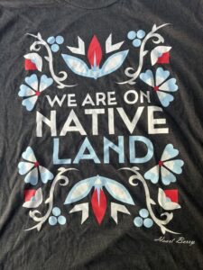 This colorful shirt supports Waḳan Ṭípi (Bruce Vento Nature Sanctuary), named to honor the significance of Waḳan Ṭípi Cave as a Dakota sacred site. It is also a healing place for many, including my family, who have walked its trails, skated on its frozen ponds, and had heart-to-hearts while wandering its paths.